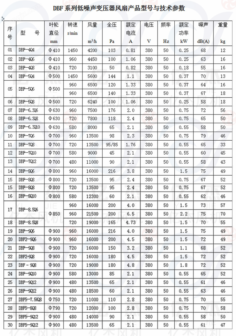 DBF、DBF2-低噪聲CFZ- -吹風(fēng)裝置殊環(huán)境代號(hào): TH一濕熱帶型; TA一干熱帶型。吹風(fēng)方向:Q-- 前吹式(空氣從電動(dòng)機(jī)流向葉輪);